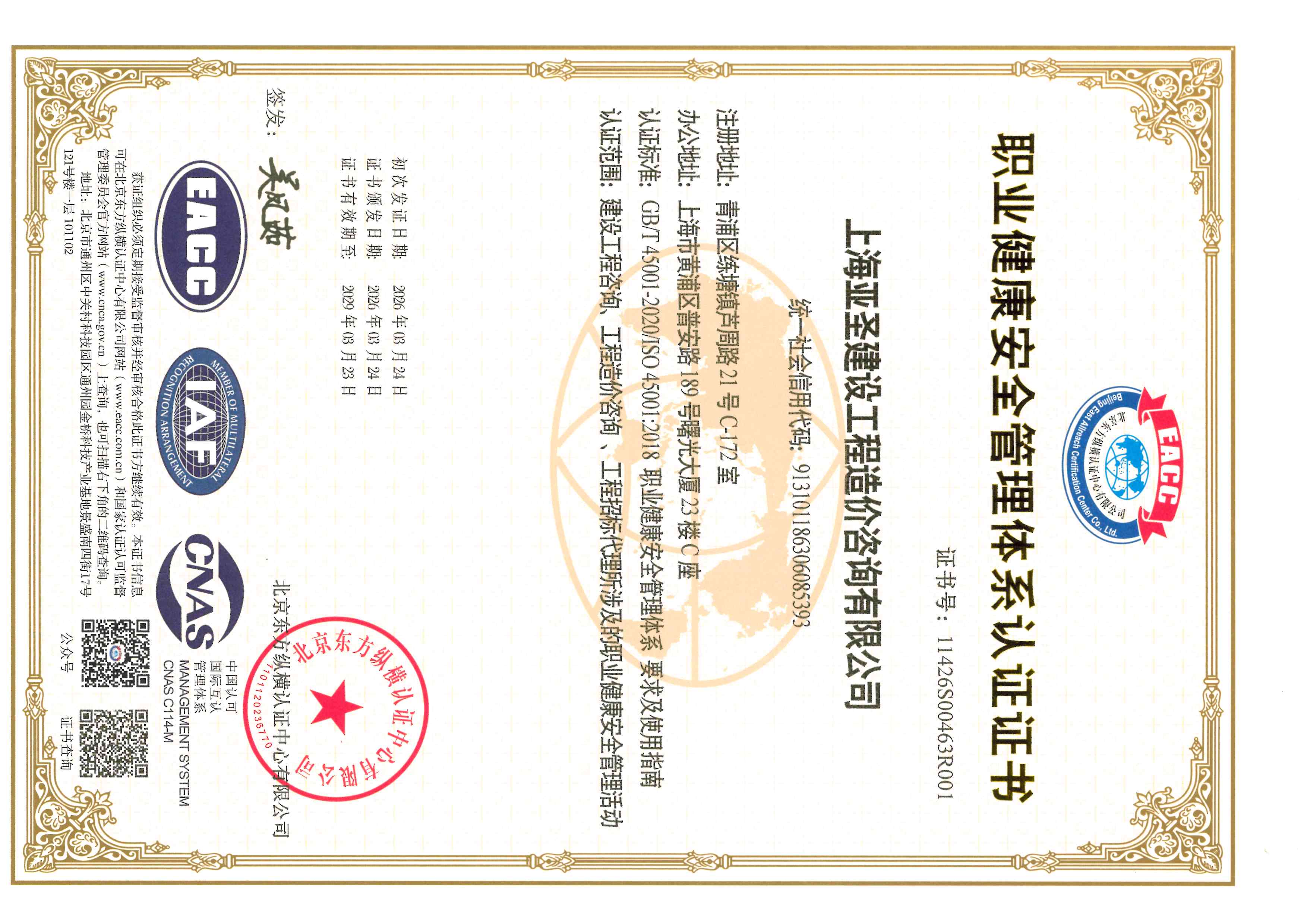 上海亚圣再获ISO14001:2015环境管理体系、ISO45001:2018职业健康安全管理体系认证,为客户服务力求更高更严标准!